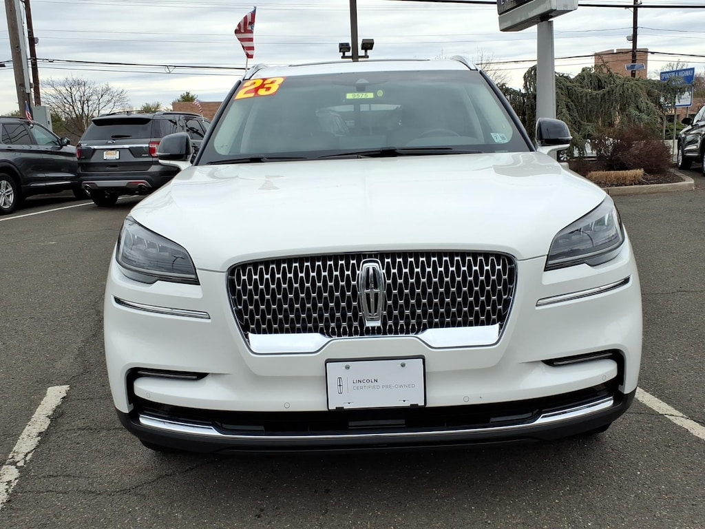 Certified. Pristine White Metallic Tri-Coat 2023 Lincoln Aviator Standard 4D Sport Utility AWD 3.0L V6 10-Speed Automatic